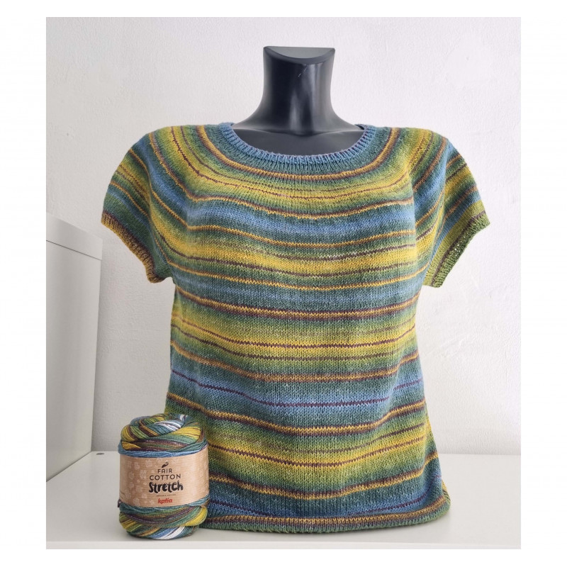 Kit completo di filato e spiegazioni per creare la bellissima maglietta topdown con i ferri circolari.