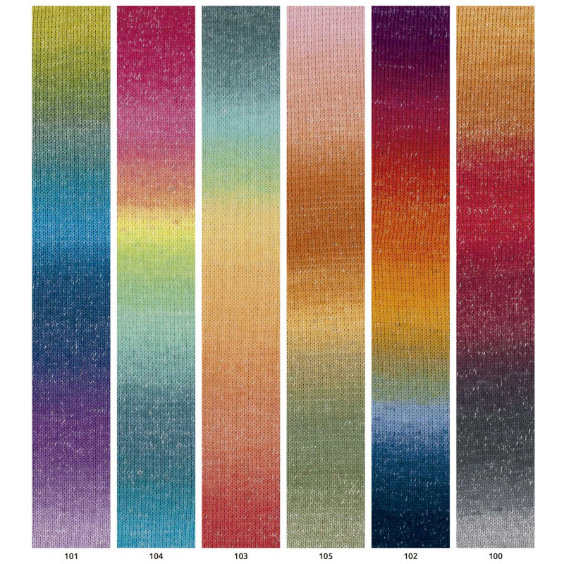 93% cotone 4% poliestere 3% poliammide150g = 475mFerri: 3/3,5Uncinetto: 3/3,5